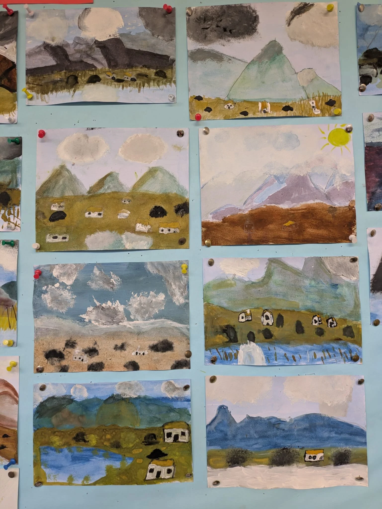 Ms. Pearson’s class engaged with acrylic and watercolor painting inspired by artist Paul Henry.